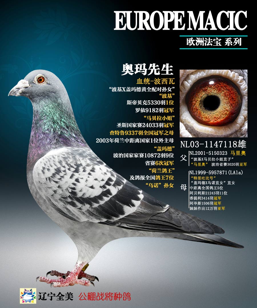 母NL1999-5957871“特里吐比号”“盖玛德”X“和平雌”荷兰鸽王 直女