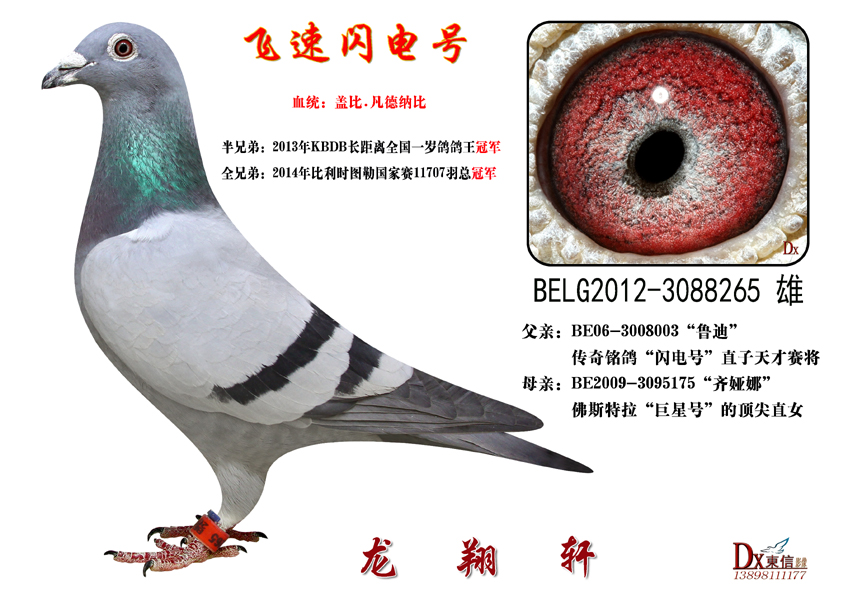 ▲父亲“闪电号”是世界级传奇铭鸽,详情参加1场1号拍卖鸽的相应介绍