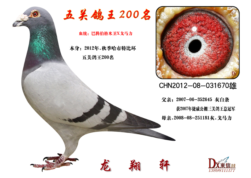 ●▲.父亲.2007-06-352645.灰白条.本身荣获.2007年.辽宁.捷威公棚.三关鸽王.冠军.