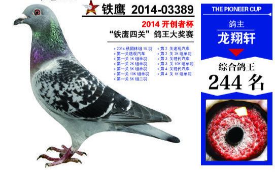 | 赛绩:2014年.秋季.北京开创者.四关鸽王.244名. |