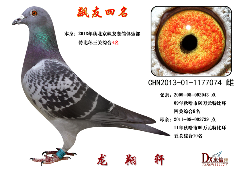 2013年.秋季.特比环.荣获三关综合鸽王.4名。[2013-01-1177074].点雌.[团体冠军]11羽。