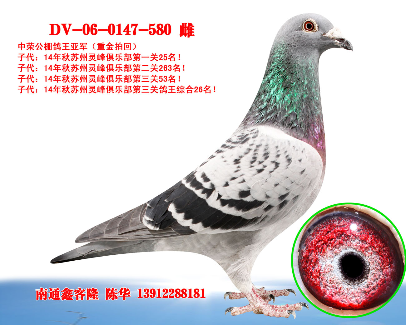 2006/DV-0147-580雌 雨点砂眼中荣公棚鸽王亚军(重金拍回)