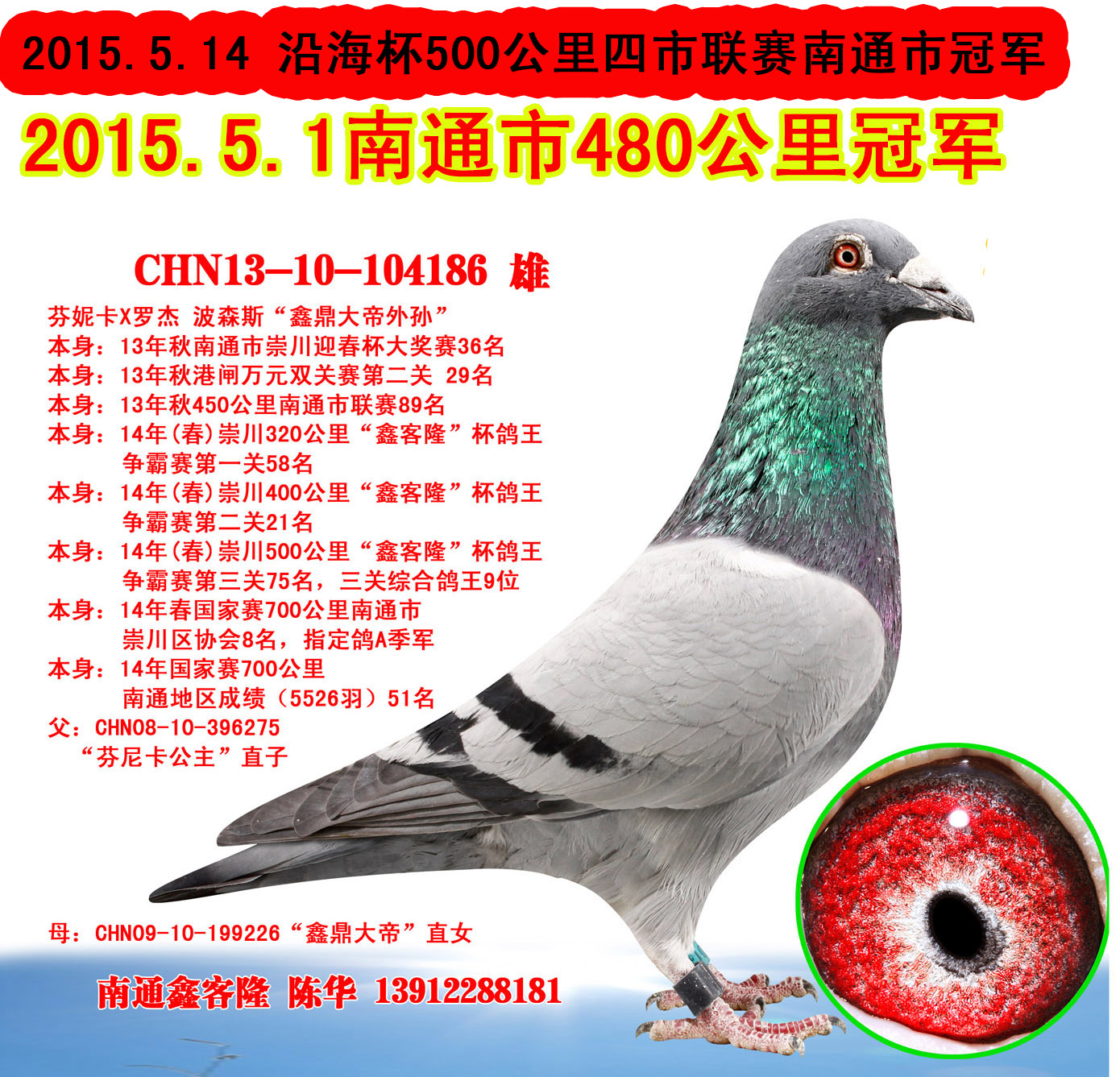 本身:14年春国家赛700公里南通市崇川区协会8名,指定鸽A季军