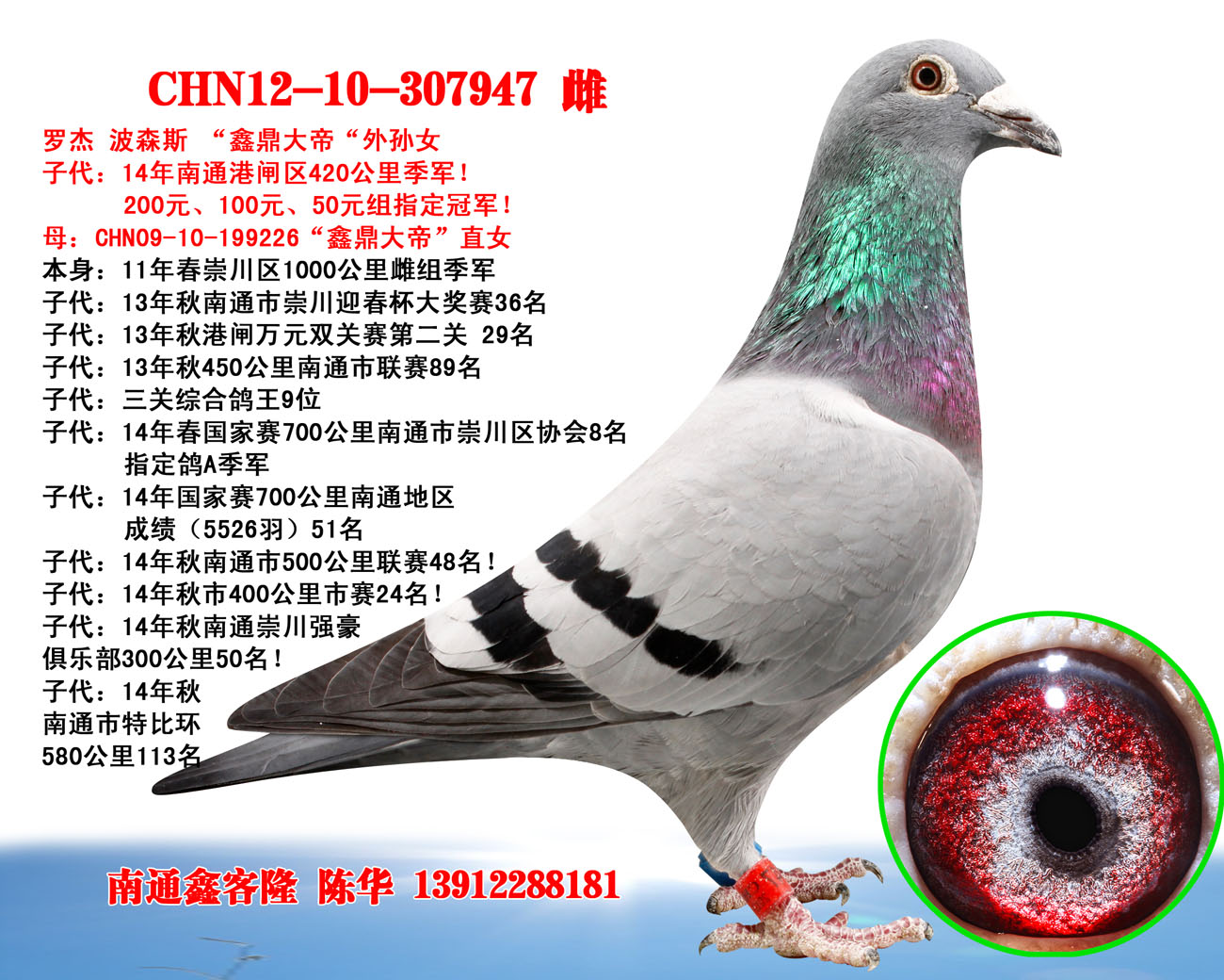 子代:14年春国家赛700公里南通市崇川区协会8名,指定鸽A季军