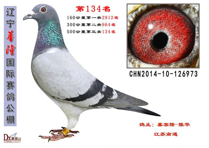 14年(春)崇川500公里“鑫客隆”杯鸽王争霸赛第三关75名,三关综合鸽王9位