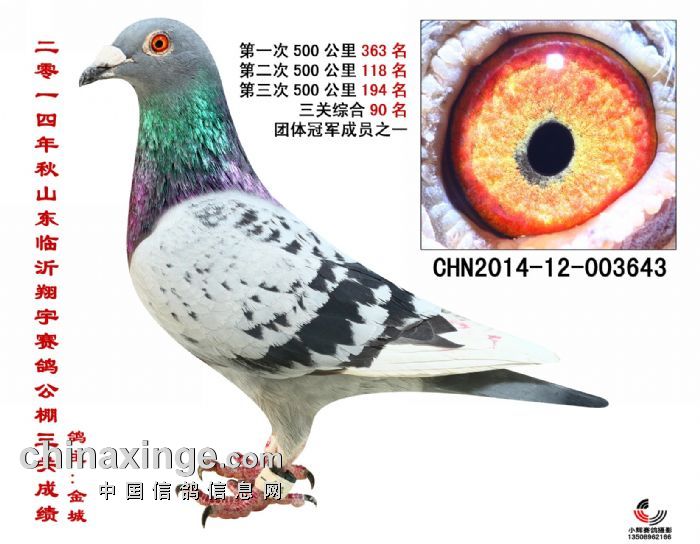 赛绩:2014年山东临沂翔宇公棚决赛363名
