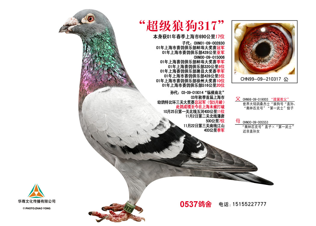 子代:CHN01-09-002830 01年上海市赛鸽俱乐部蚌埠大奖赛冠军
