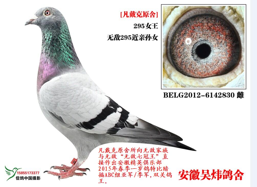 凡戴克原舍"295"直孙女。295是凡代克五大名鸽其中只之一,更是居斯特种鸽的源头,如果没有295那就没有居斯特-詹森。