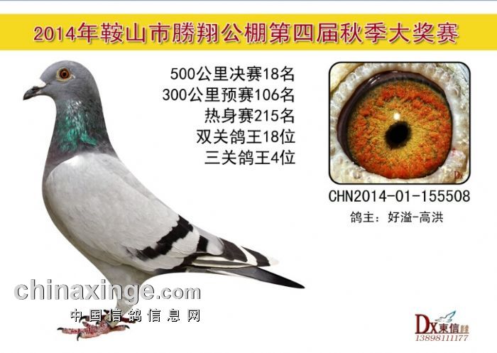 赛绩:辽宁鞍山勝翔公棚鸽王4名