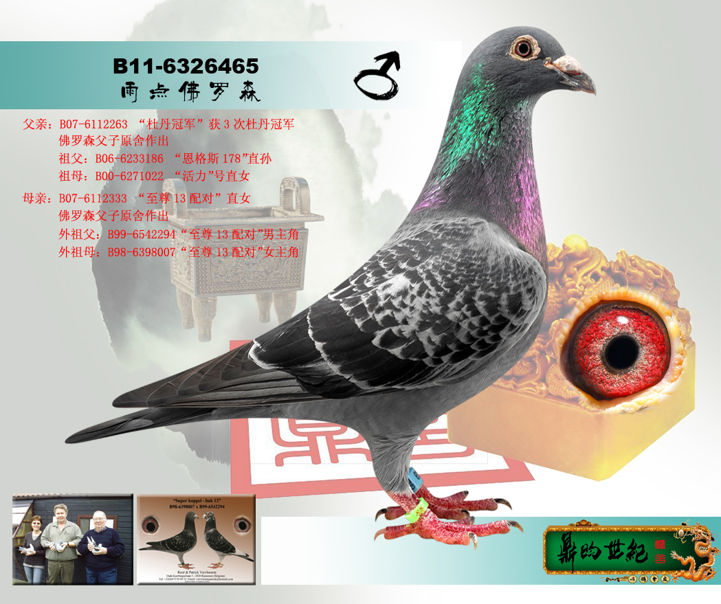 佛罗森的鸽子,羽质一流、骨架坚实有力、肌肉富有弹性、属中小体型,轻盈机警、随时爆发。我潜心研究欧洲的赛制、血系和管理方法多年,我做了认真的准备,我相信我的选择,我相信“至尊13配对”的后代会在中国遍地开花。
