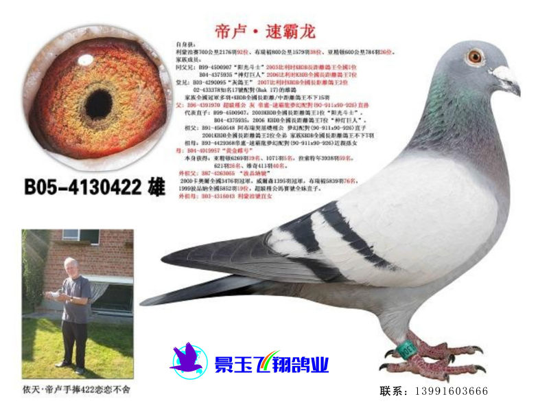 并为比利时英格斯兄弟作出两羽孙代赢得2005KBDB全国大中距离鸽王9位+2009KBDB全国长距离鸽王5位