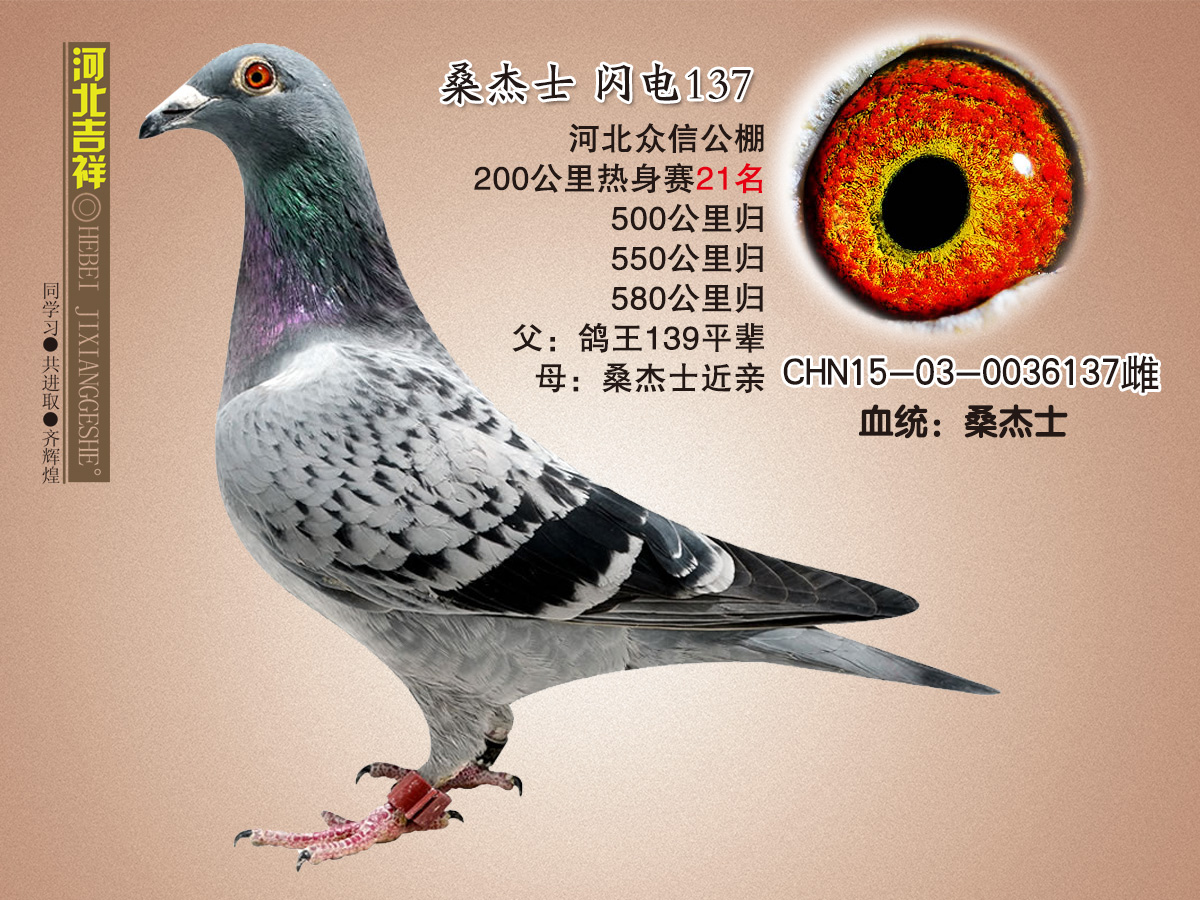 | 赛绩:河北众信公棚 200公里热身赛21名; 500公里归; 550公里归; 580公里归; | |