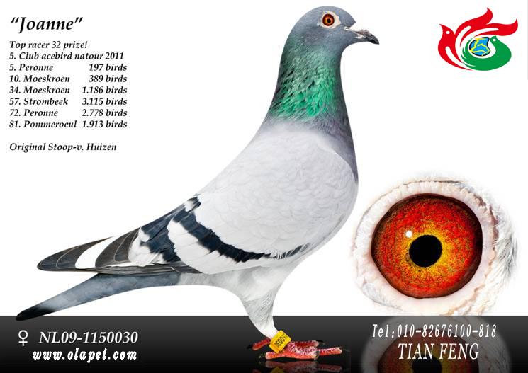 赛绩:2011年自然赛制鸽王5名 本身32次获奖; 荷兰2011年NPO奥尔良全国冠军得主