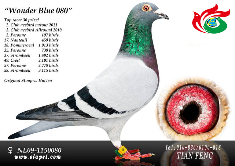 赛绩:2010年全距离鸽王3名; 2011年鸽王亚军 本身36次获奖; 荷兰2011年NPO奥尔良全国冠军得主