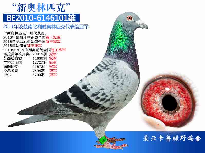 - 赛绩:201 1年波兹南比利时奥林匹克代表鸽亚军 在利奥.赫尔曼斯拍卖会上以21 0000欧元高价拍得