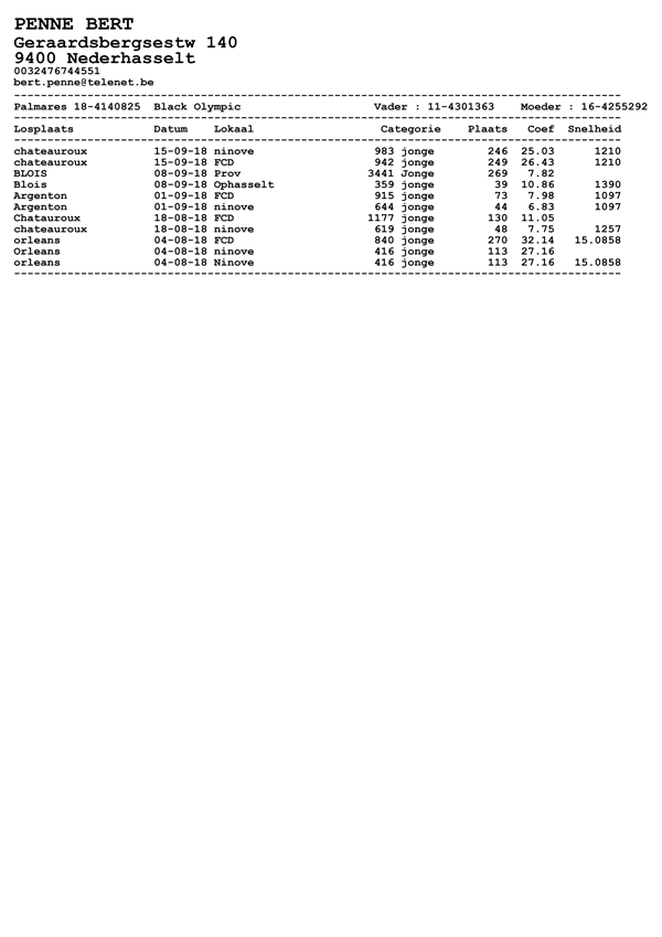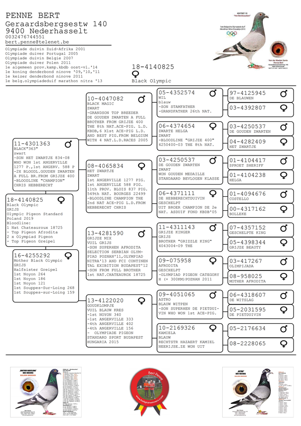 - 赛绩:2019年波兰奥林匹克代表鸽