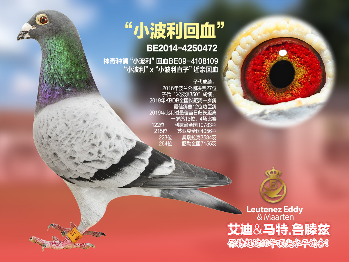 - 赛绩:子代成绩: 2016年波兰公棚决赛27位 子代“米波尔350”成绩: 2019年KBDB全国长距离一岁鸽最佳鸽舍12位功臣鸽